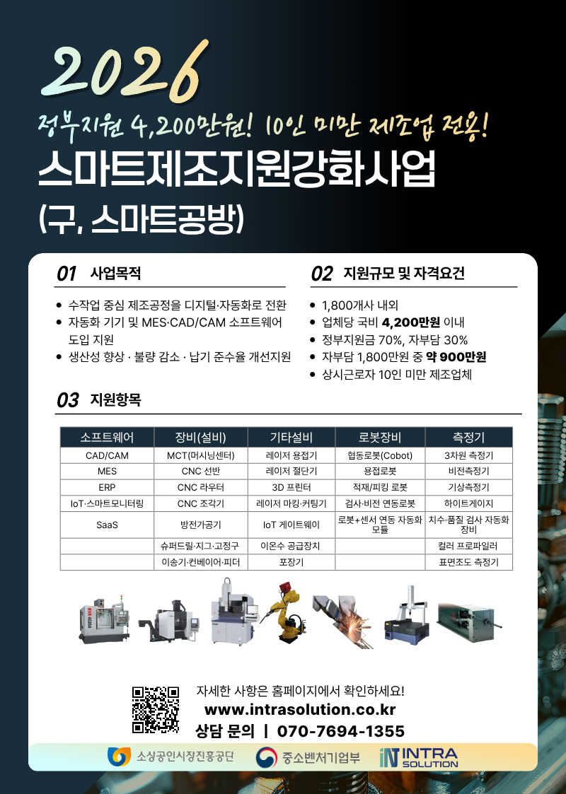- 자동화 기기 및 MES·CAD/CAM 소프트웨어 도입 지원