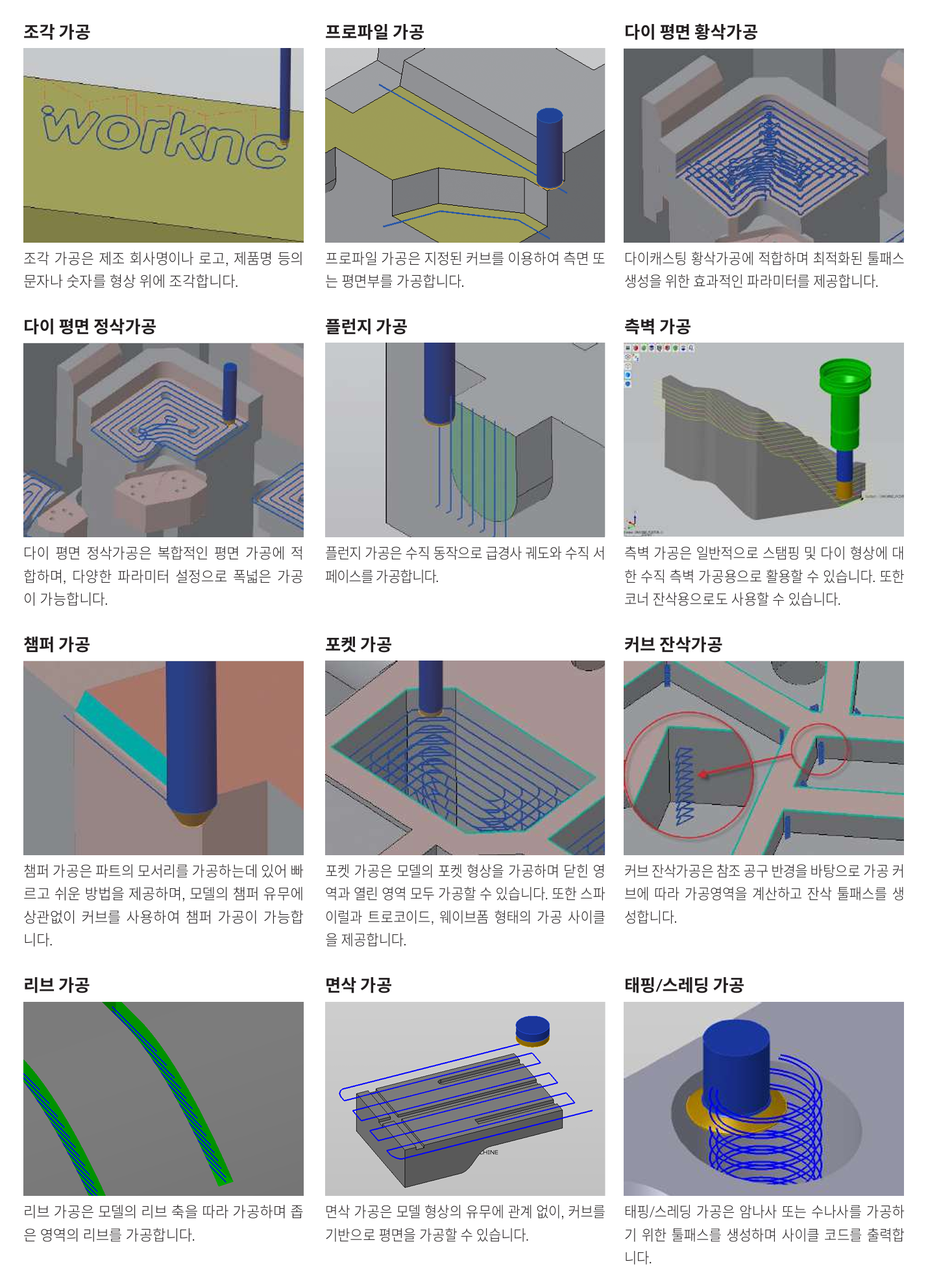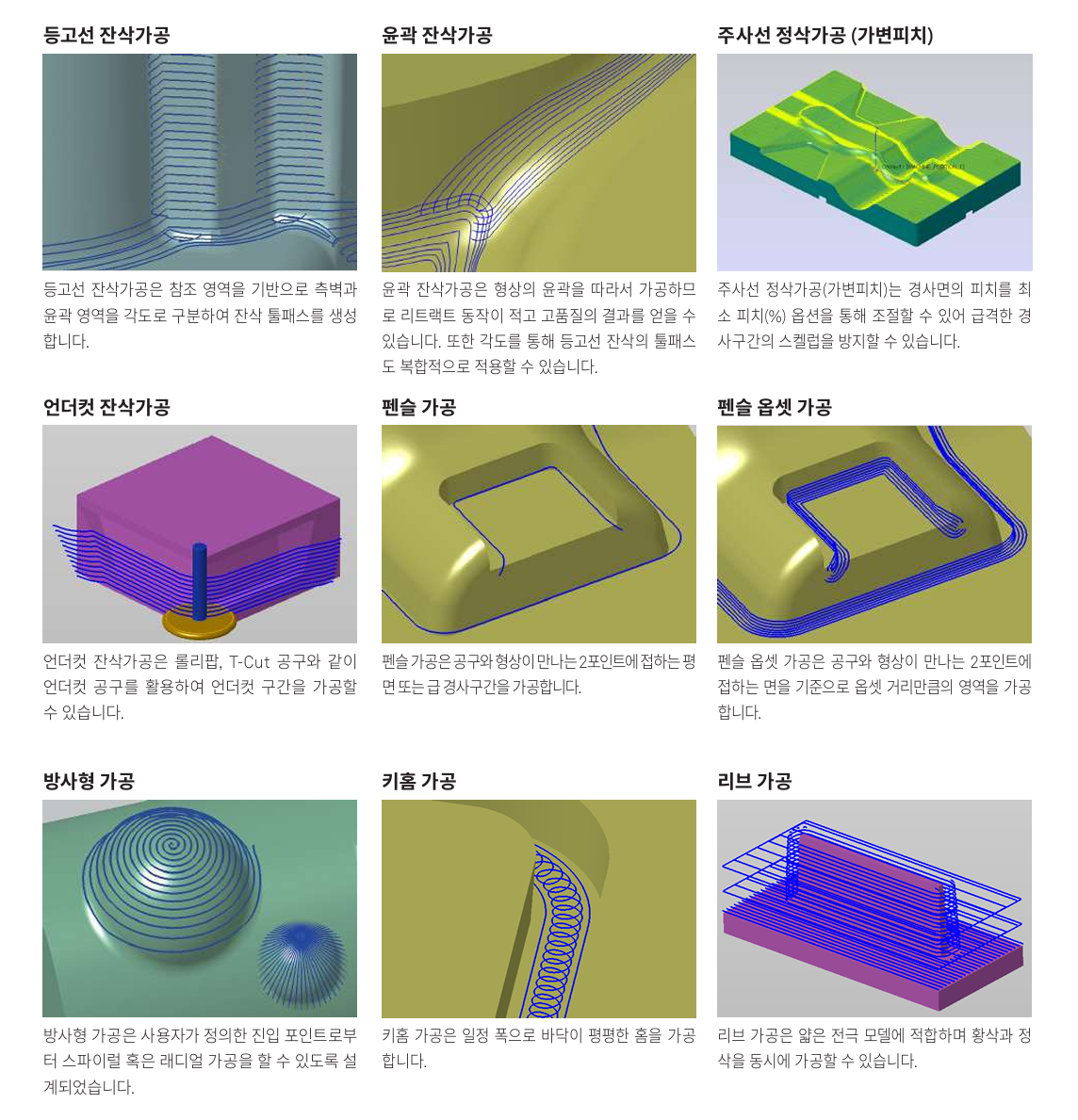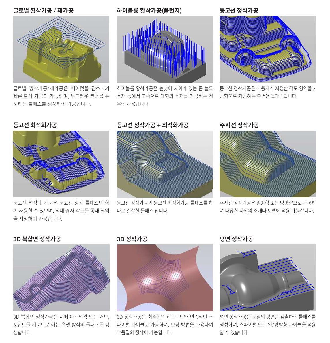 제공해 복잡한 형상에서도 높은 품질과 가공 효율을 동시에 확보합니다.