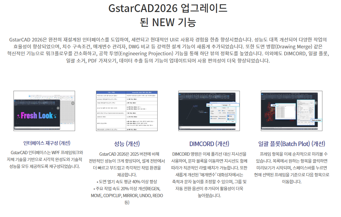 GstarCAD는 지속적인 개선과 혁신적인 기술을 바탕으로