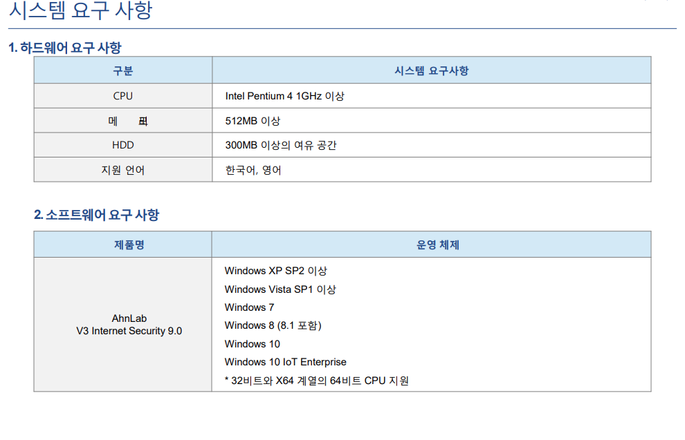 V3 Internet Security 9.0 시스템 사양